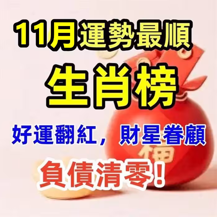 11月運勢最順生肖榜,好運翻紅,財星眷顧,負債清零