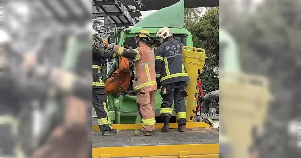 國一五股段2大型車追撞 駕駛「毫無動靜」警消急破窗