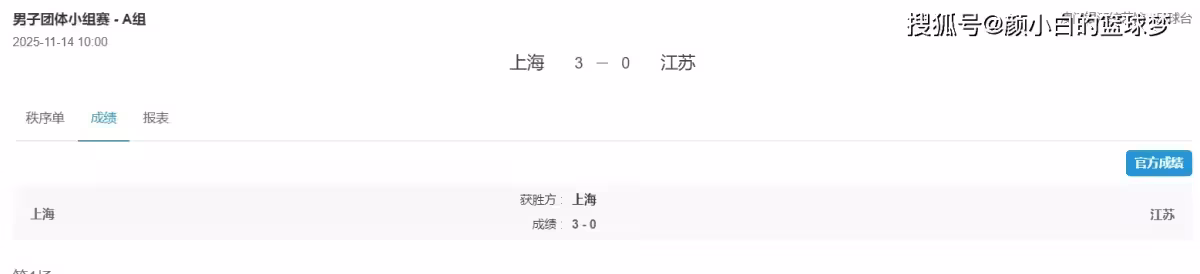 全運會桌球成年組團體賽開打,上海隊3-0擊敗江蘇隊,第一盤是周愷/許昕3-1曹彥濤/陳亞軒、第二盤是樊振東3-1孫聞,第三盤是許昕3-1陳亞軒。