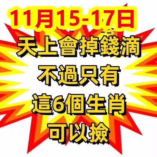 恭喜了7大生肖,在未來三天( 11月20~23日)即將有一筆橫財,準備好收錢吧