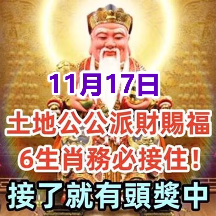 11月17日土地公公,必得財神眷顧,大發橫財,富貴盈門,前程似錦。