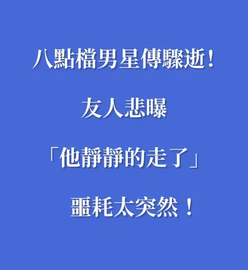 八點檔男星傳驟逝!友人悲曝「他靜靜的走了」噩耗太突然了