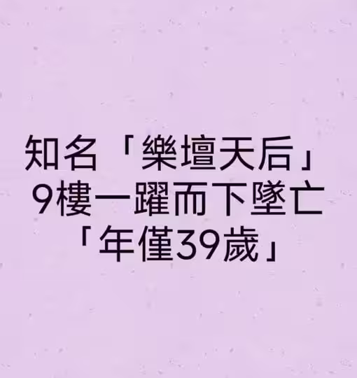 知名「樂壇天后」9樓躍下墜亡!「享年39歲」