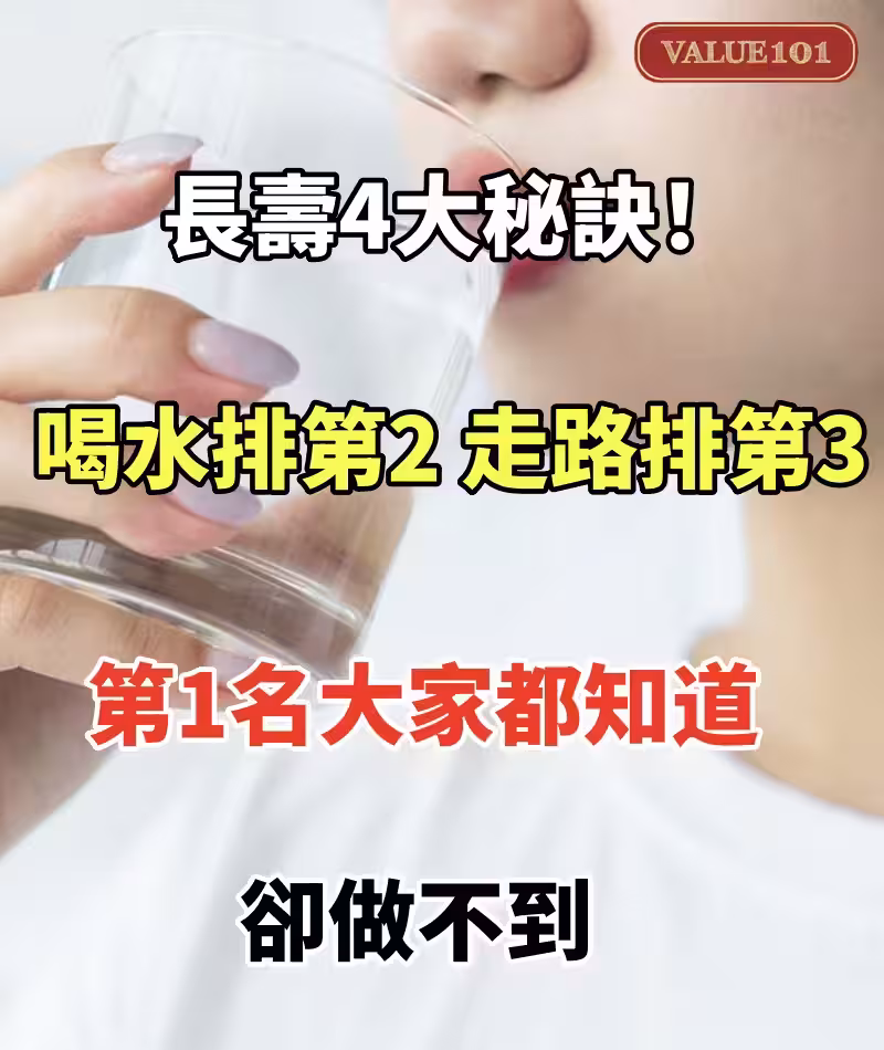 長壽4大秘訣 喝水排第2「走路只排第3」第1名大家都知道卻做不到