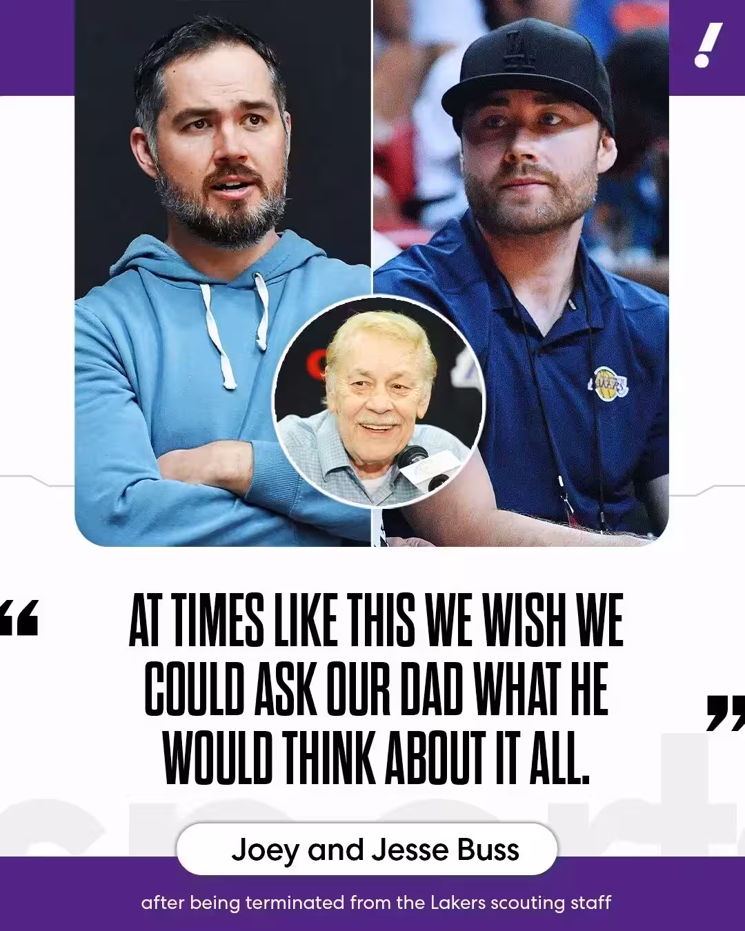 過去10年,這哥倆一直掌管著球探以及球員發展部門。幫助湖人發掘里夫斯、克拉克森、庫茲馬、小南斯等球員。傑西-巴斯發聲明表達不滿:「讓我和喬伊掌管運營部,是父親巴斯博士的想法。如今珍妮保留職位,她的兄弟全被解僱了。」