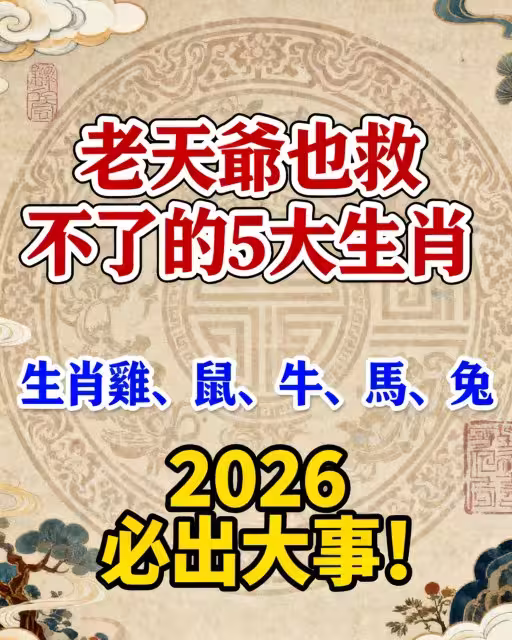 老天爺也救不了的5大生肖(生肖雞、鼠、牛、馬、兔)2026必出大事!