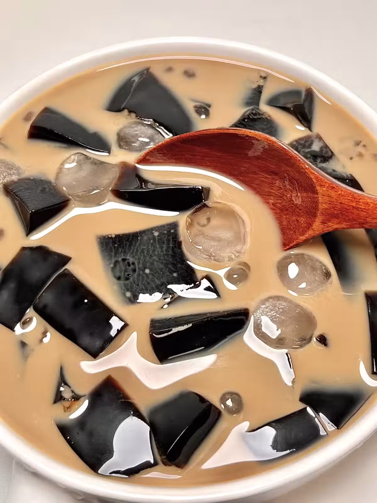 🌈食材:黑涼粉、咖啡、西米、冰塊
