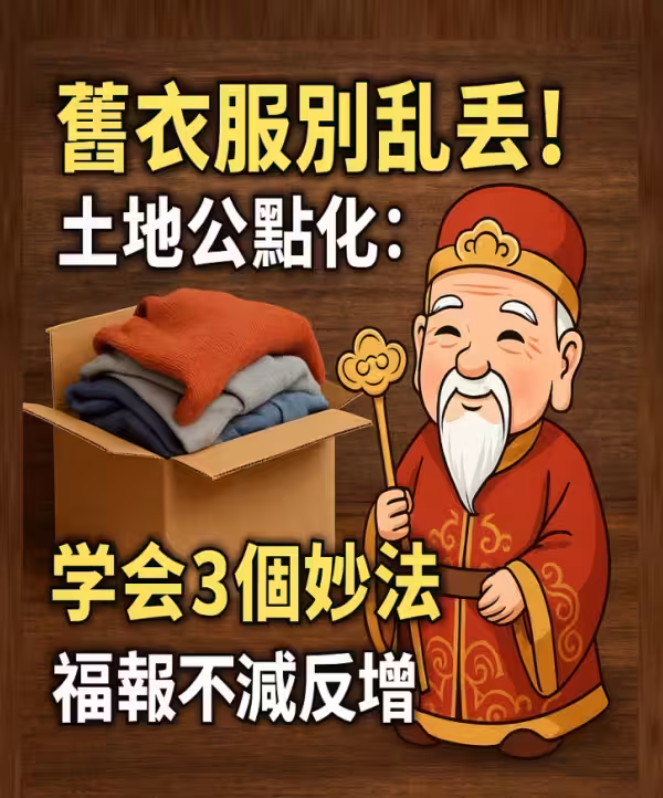 土地公作為守護一方土地、見證人間煙火的神祇,點出了三個關鍵妙法,做好這三步,舊衣不僅不會損害福報,反而能成為積累善緣的橋樑。