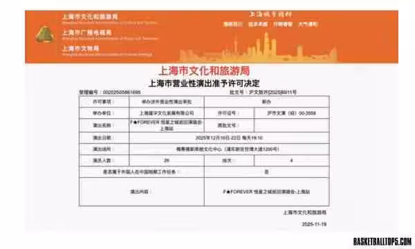 根據上海市文旅局官網公布的「上海市營業性演出准予許可決定」,名為「F★FOREVER 恆星之城巡迴演唱會-上海站」的活動已正式獲批,將於2025年12月19日至22日在上海梅賽德斯奔馳文化中心連續舉行4場演出。