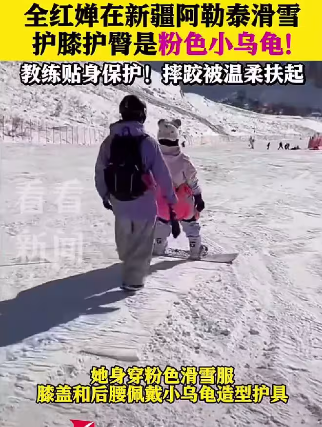 享受人生!全紅嬋阿勒泰滑雪休整放鬆,戴粉紅烏龜護膝護腰真的好可愛
