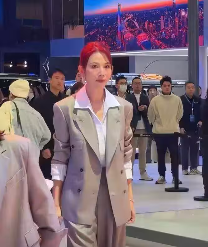 酒紅色的頭髮雖然看著就很有朝氣和氣場,但搭配上蔡少芬疲憊的面孔,就顯得不是那麼貼合了。