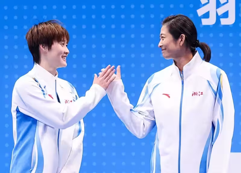 這次的全運會,王琳指導是浙江羽毛球女隊的主教練。而陳雨菲就是浙江羽毛球隊的隊員。這次全運會的羽毛球團體賽上,王琳指導帶領浙江隊拿到了金牌。所以頒獎典禮上,王琳指導和陳雨菲她們一起登上了領獎台。