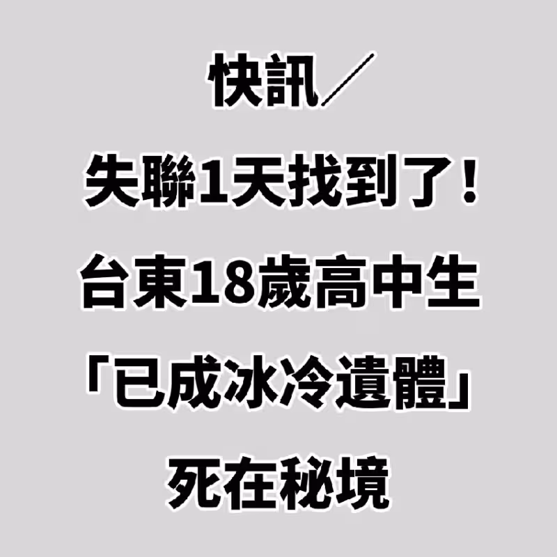 快訊/失聯1天找到了!台東18歲高中生「已成冰冷遺體」死在秘境!
