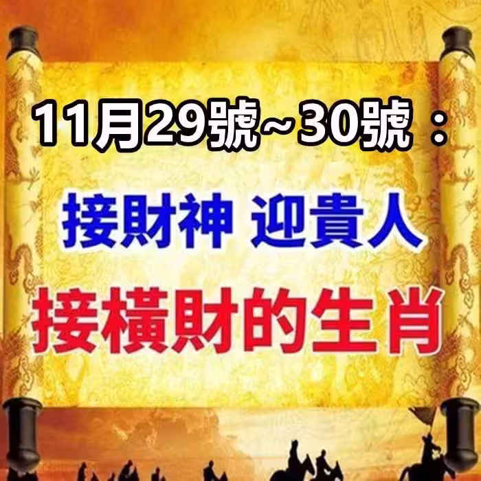 11月29號~30號:接財神 ,迎貴人,接橫財的生肖。