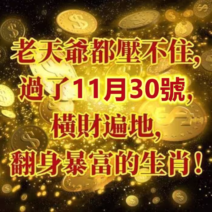老天爺都壓不住 ,過了11月30號橫財遍地 ,翻身暴富的生肖 !