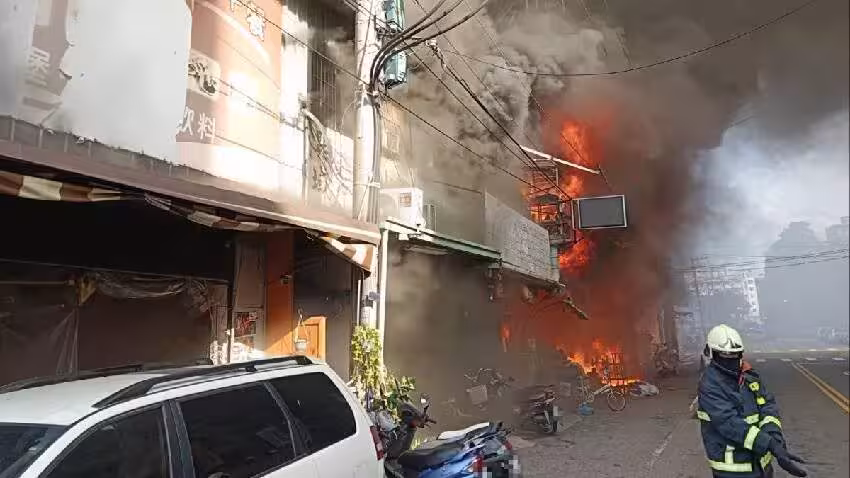 台中市西屯區逢甲商圈,今(24)日上午11時08分發生一起火警,一棟5層樓的店鋪疑似因電線走火,導致屋內陷入火海,並延燒到隔壁另一間店鋪,且一度有一名男子受困