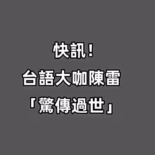 快訊/ 台語大咖陳雷「驚傳過世」!