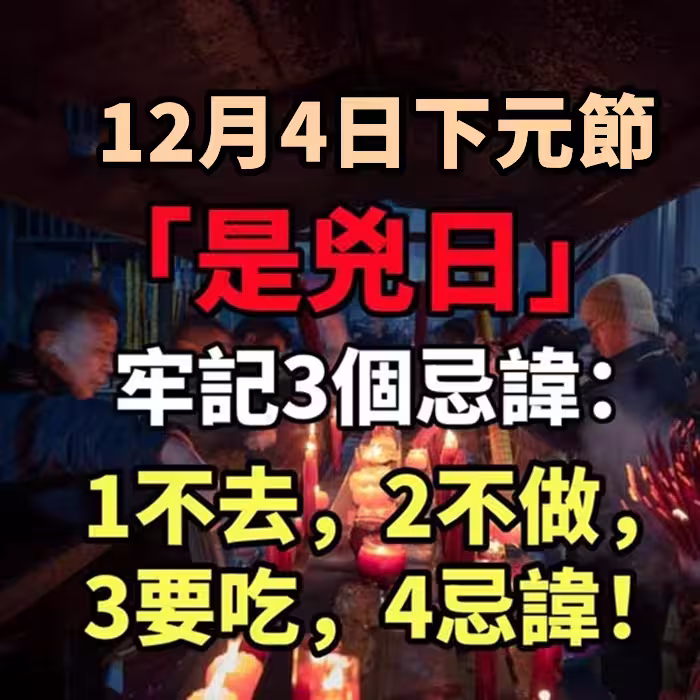 12月4日下元節是「凶日」牢記3個忌諱:1不去,2不做,3要吃,4忌諱