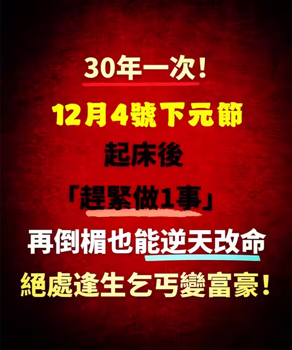 30年一次!12月4日下元節,起床後「趕緊做一事」 再倒楣也能逆天改命, 絕處逢生乞丐變富豪