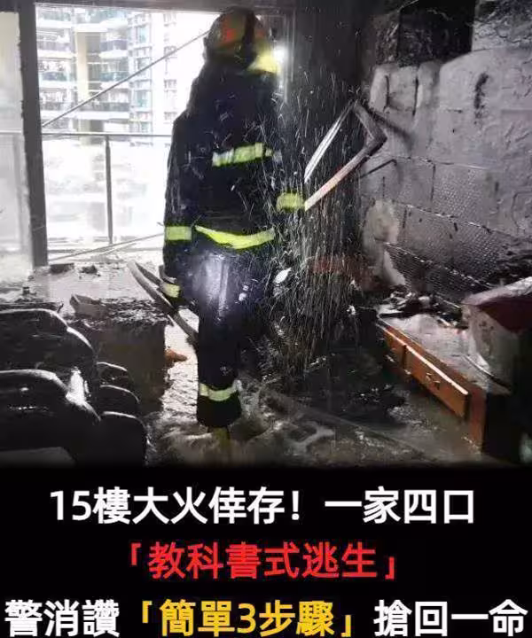 15樓大火倖存!一家四口「教科書式逃生」救難人員狂贊「簡單3步驟」搶回一命