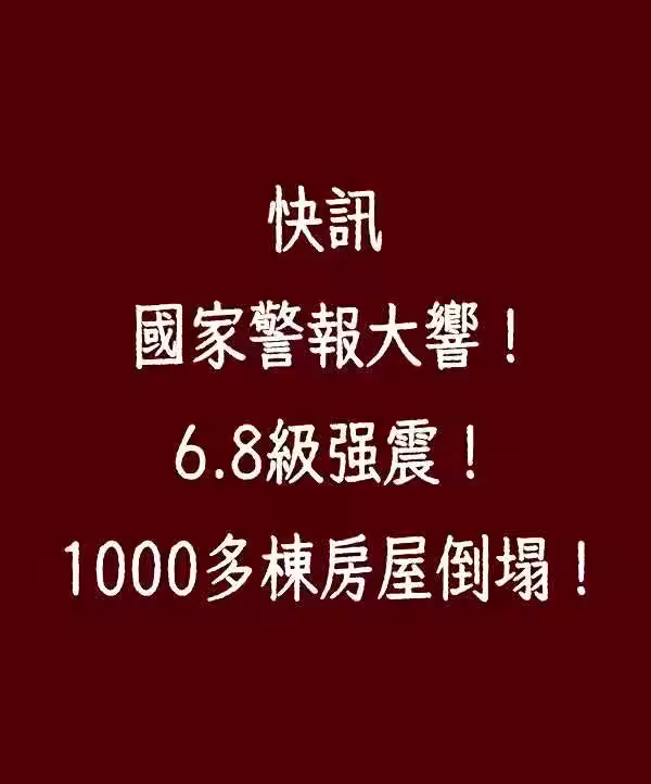 快訊/國家警報大響!6.8級強震!1000多棟房屋倒塌!