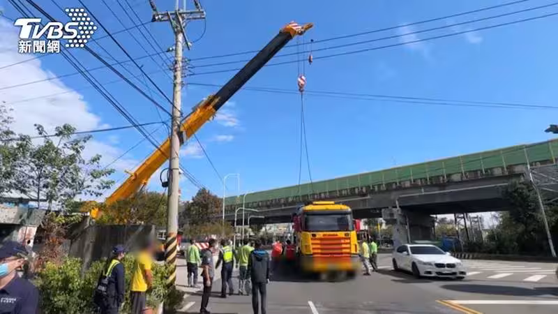 為確保救護過程的安全,業者出動了能承受聯結車重量的120頓吊車,將車體抬起。