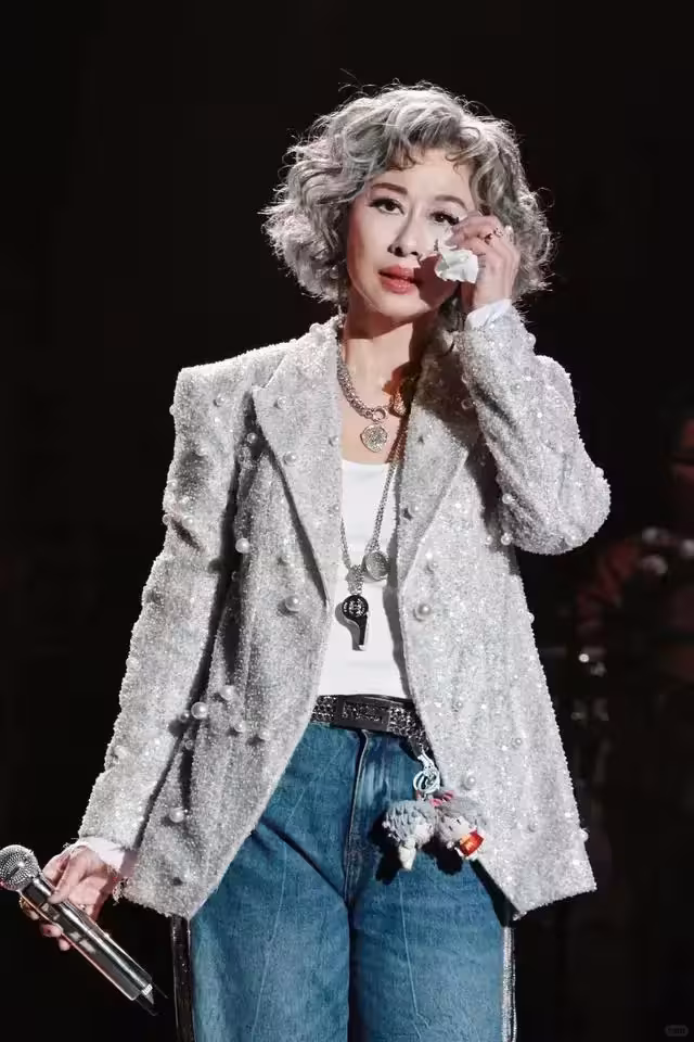 當葉倩文在台上情緒激動時,林子祥只是默默走到她身邊,輕輕拍了拍她的肩膀,以示支持。
