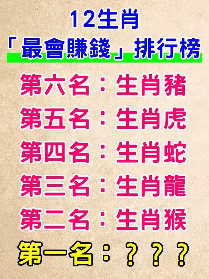 十二生肖中「最會賺錢」的生肖排行:第一名實至名歸!