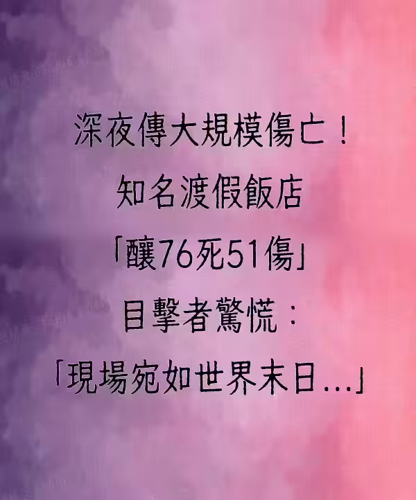深夜傳大規模傷亡!知名渡假飯店「釀76死51傷」 目擊者驚慌:「現場宛如世界末日~」