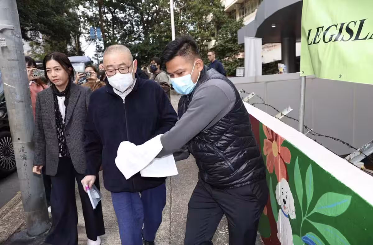 74歲劉鑾雄坐輪椅現身,需甘比攙扶起身,保鏢助理共五人相伴在旁