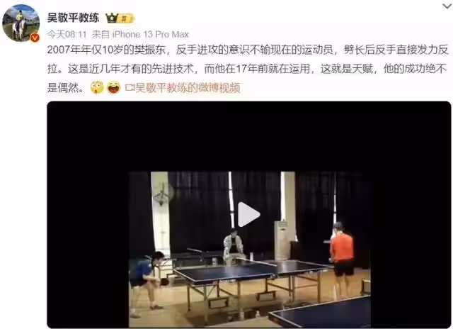 事實證明,被列為「傳奇人物」的樊振東,吳敬平對其評價半點沒錯