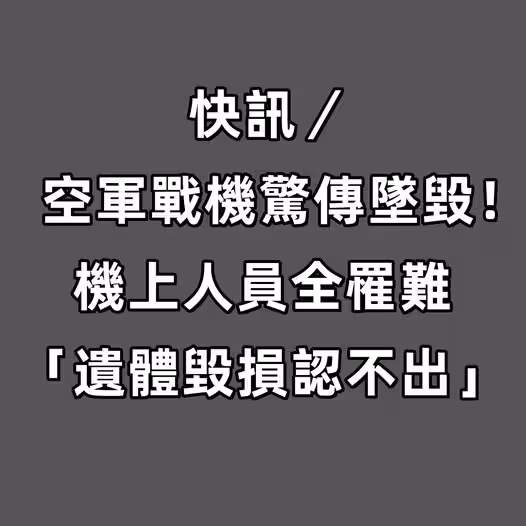 快訊/空軍戰機驚傳墜毀!!! 機上人員全罹難 「遺體毀損認不出」