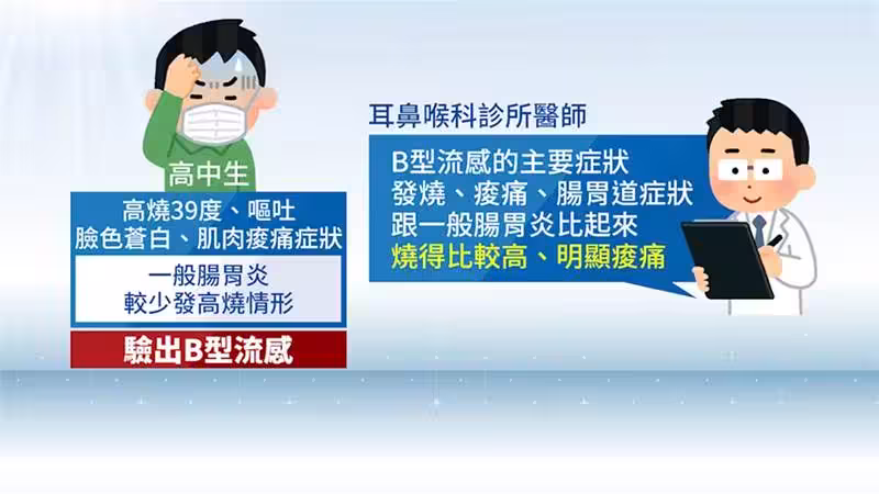 小兒科醫師林應然指出,得了B型流感的特殊之處,就是患者全身酸痛會很厲害,甚至有些酸痛到不太能夠走路。