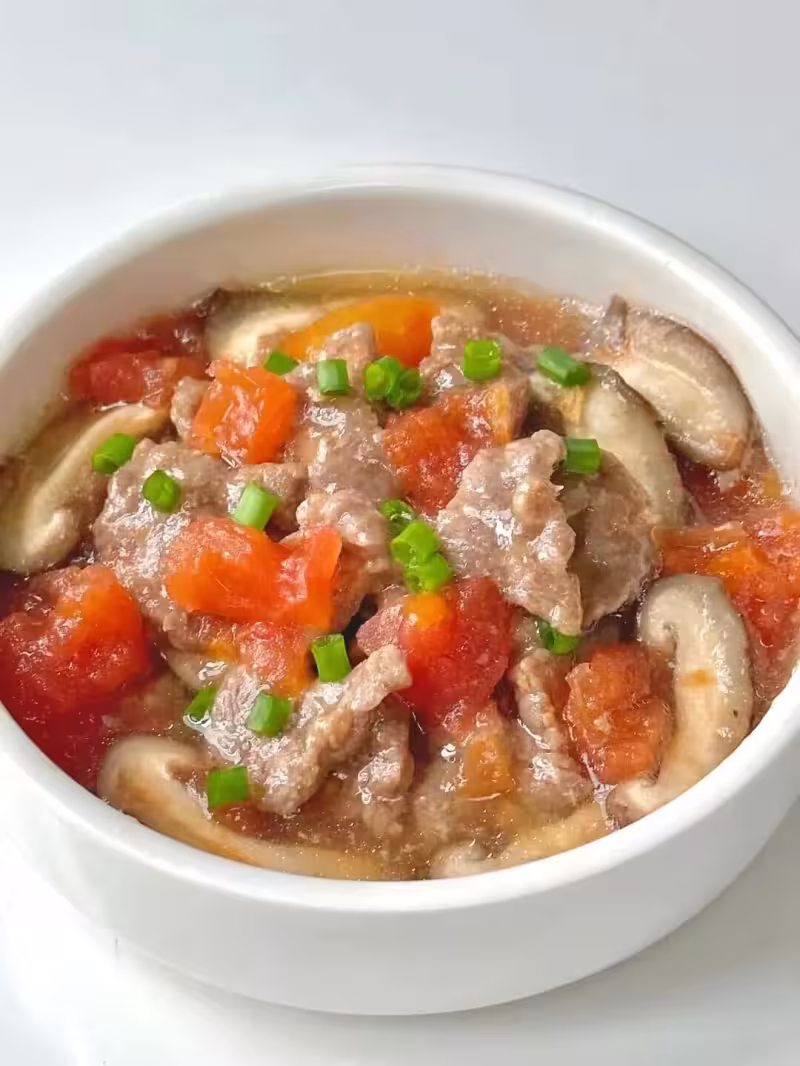 番茄的酸甜搭配牛肉的鮮嫩,蒸出來的湯汁都能拌兩碗飯,牛肉富含鐵質,特別適合正在長身體的孩子。