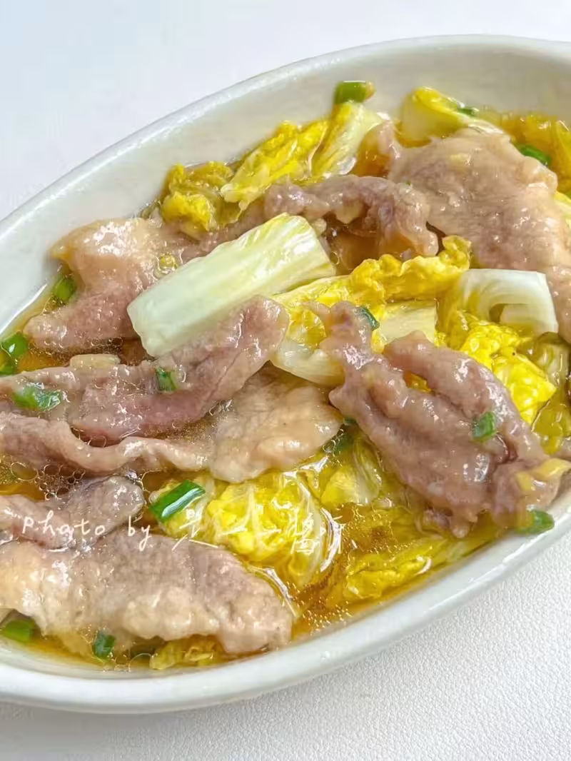 這道菜做法最簡單,娃娃菜的清甜配上嫩滑的肉片,蒸出來的湯汁都是甜的,8分鐘左右就能出鍋。