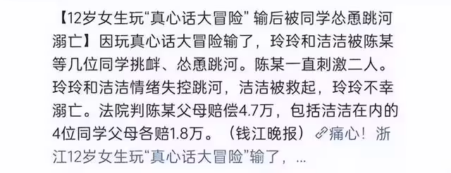 而這個女孩為了不被孤立,竟真的傻乎乎地跳了河,最後不幸溺亡。