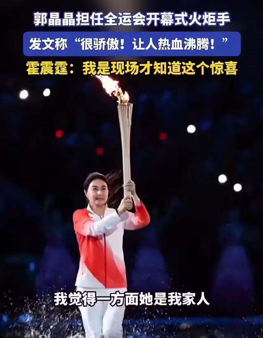 因為第三棒是郭晶晶,她身穿紅色運動服,身子挺拔地握著聖火棒,穩穩地傳遞給下一個人。