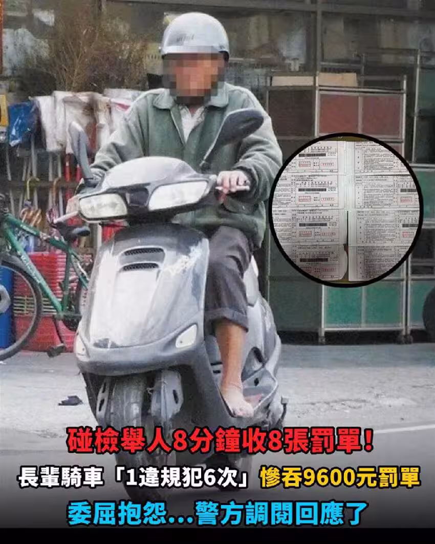 8分鐘收8張罰單!長輩騎車碰檢舉人「1違規連犯6次」委屈慘吞9600元罰單,警方調閱回應了