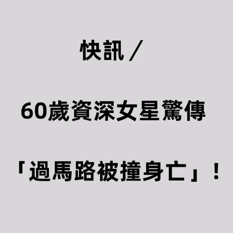 快訊/60歲資深女星驚傳 「過馬路被撞身亡」!