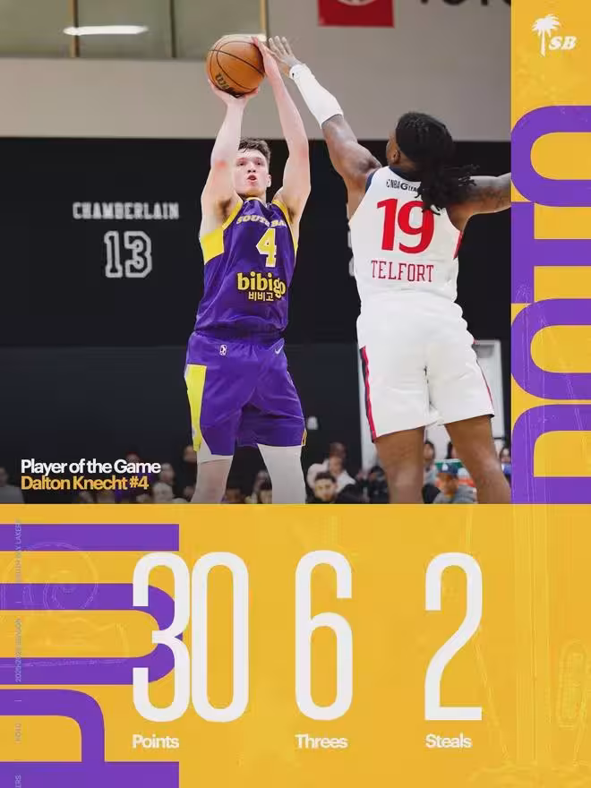 12月17日,NBA發展聯盟比賽:南灣湖人127-118戰勝聖迭戈快船。布朗尼5投2中,三分3中0,得到4分3板3助4失誤;克內克特迎來發展聯盟首秀:17投10中,三分10中6,罰球3中3,狂砍30分5籃板2助攻2搶斷1蓋帽!