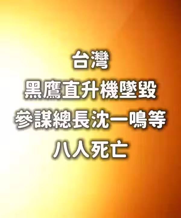 快訊/台灣黑鷹直升機墜毀,參謀總長沈一鳴等八人死亡!