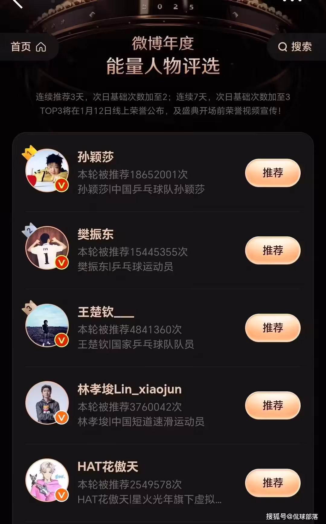 近期,國內一家著名社交平台推出了年度能量人物投票活動,目前排在前三名的運動員,都是桌球領域,分別為孫穎莎、樊振東、王楚欽。