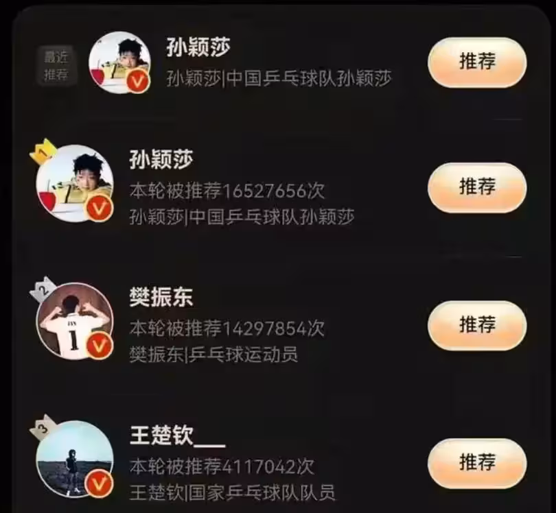 1652萬票!孫穎莎爆發,反超樊振東排第1,王楚欽被甩開1000萬票