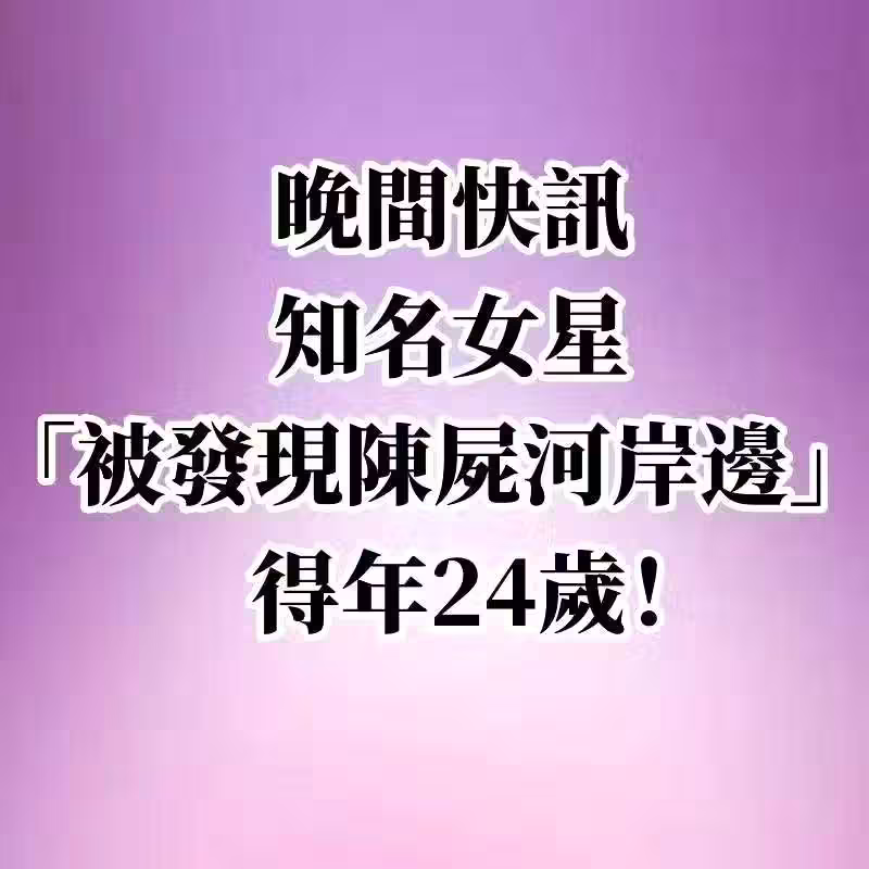晚間快訊/知名女星 「被發現陳屍河岸邊」得年24歲!