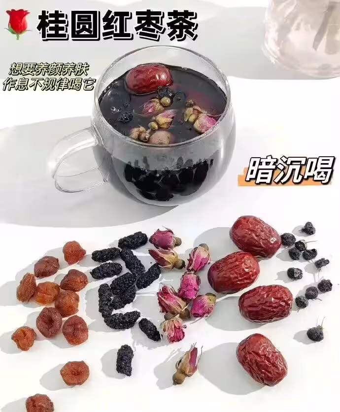 配方:桂圓+桑葚+玫瑰+紅棗+黑枸杞