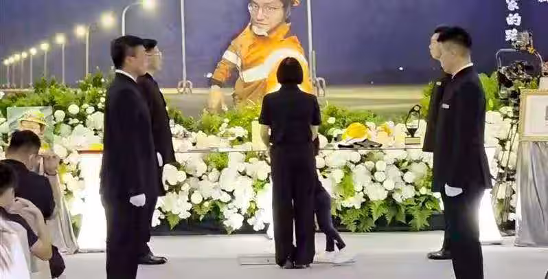 台電英雄告別式/ 李元瀚幼女懵懂,愛妻抱起鞠躬永別:今生來世永遠愛你!