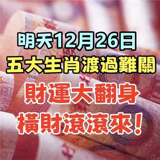 明天12月26日,五大生肖渡過難關, 財運大翻身,橫財滾滾來!