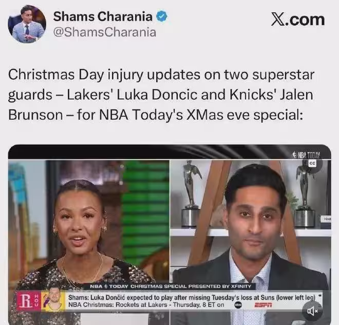 前兩天湖人88-103不敵快船同城德比,東契奇在此役遭遇左小腿挫傷,從而缺席了湖人108-132太陽的比賽,卻在接下來的聖誕大戰如上所述選擇火線復出。