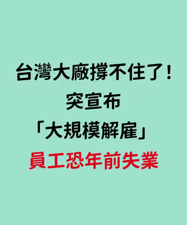 台灣大廠撐不住了!突宣布「大規模解僱」 員工恐年前失業