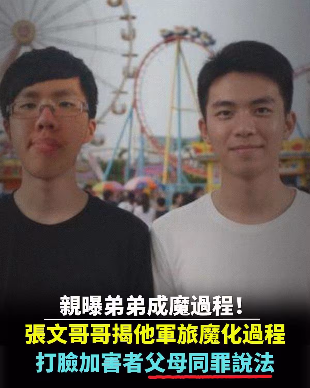 親曝弟弟成魔過程!!! 張文哥哥揭穿他軍旅魔化過程,打臉加害者父母同罪表達